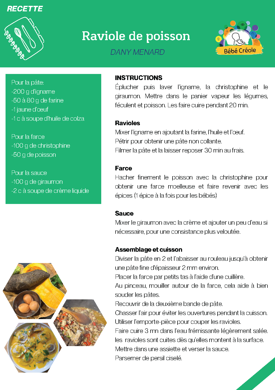 Recette réalisée par Dany Ménard, Bébé Créole