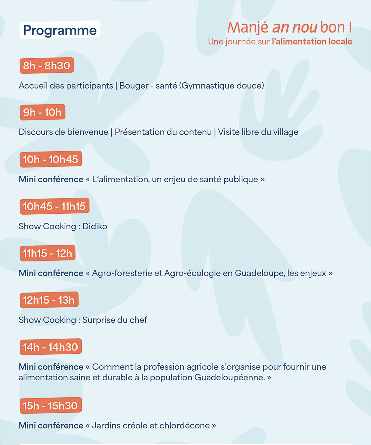 Organisée par Promotion Santé Guadeloupe, Saint-Martin et Saint-Barthélemy, en collaboration avec l’ASSOFWI, cette journée met à l’honneur le manger local, la santé , la valorisation de notre biodiversité et de nos produits « péyi » traditionnels et insolites.
